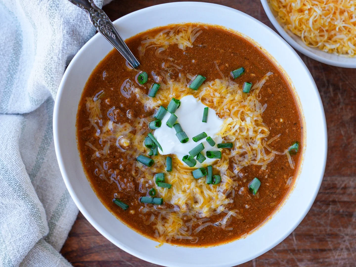 So back to this chili, my friend. Every time I make it I fully anticipate having leftovers so we can enjoy it again for lunch the next day, and every time my three boys and husband DEVOUR it and ask for multiple bowls. It’s that good!